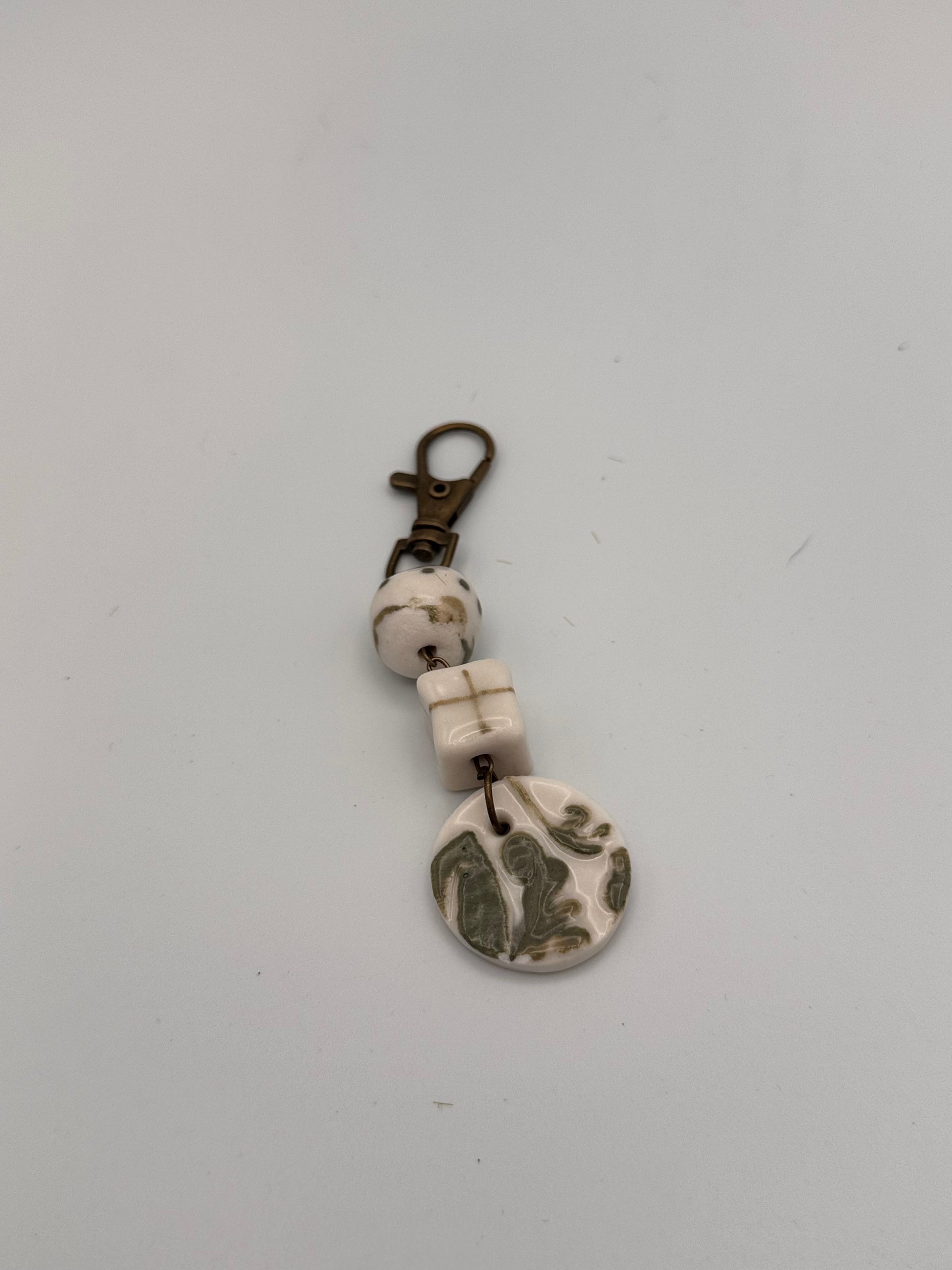 Handmade and hand glazed, our Bag Charms are the perfect accessory to add a touch of elegance to your bag. Made from high-quality porcelain and adorned with antique brass wiring, these charms are stylish and durable. Elevate your style with our Bag Charms today!These Bag Charms are unique and individual, with each charm varying slightly in design. The picture serves as a representation of the charm you will receive, ensuring its distinctiveness. Elevate your bag with these one-of-a-kind charms!